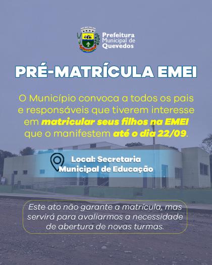 A Secretaria Municipal de Educação, em parceria com a Administração Municipal, está realizando um levantamento de interesse para abertura das turmas de Educação Infantil (EMEI).